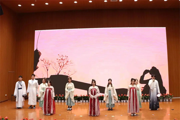 4月19日,西安培华学院“语贯古今、字载中华”全媒体传播创新发展研究院传统文化传播工作室首映展演在维之图书馆报告厅举行。剧目总监制、传媒学院院长杜耀峰及传媒学院师生出席了本次汇演。本次展演以诗经、史记等古代文学经典作品为主题,传承中华传统文化。