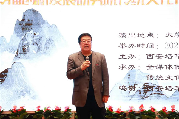 4月19日,西安培华学院“语贯古今、字载中华”全媒体传播创新发展研究院传统文化传播工作室首映展演在维之图书馆报告厅举行。剧目总监制、传媒学院院长杜耀峰及传媒学院师生出席了本次汇演。本次展演以诗经、史记等古代文学经典作品为主题,传承中华传统文化。