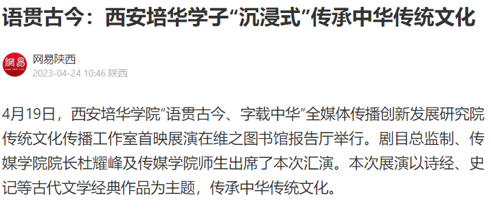 网易新闻:语贯古今:西安培华学子“沉浸式”传承中华传统文化