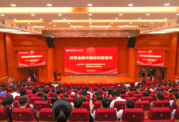 学工部联合浦发银行太白路支行开展防范金融诈骗宣讲活动,通过反诈进校园活动增强在校大学生的金融安全意识,更好服务学校“三全育人”工作目标。活动现场,浦发银行工作人员向同学们讲解了常见电信网络诈骗手段,宣传了“防范电信网络诈骗”和如何正确使用银行卡等金融知识,提醒同学们保护好个人身份证和银行卡信息,帮助在校大学生增强防诈反骗的意识和能力,保障个人财产安全。
