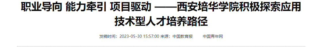 2014年,为适应社会经济发展对应用型人才的需求,西安培华学院积极响应国家大力倡导地方普通本科高校向应用型转变的号召,成为陕西省首批转型发展试点单位。多年来,学校坚持“以人为本,以德为先”办学理念,在育人实践中传承与创新“黄炎培职教理念”,依托校企共同体资源共享、协同增效的优势,大力推进应用型课程改革,积极探索“职业导向、能力牵引、项目驱动”的应用技术型人才培养路径,取得阶段性成效。