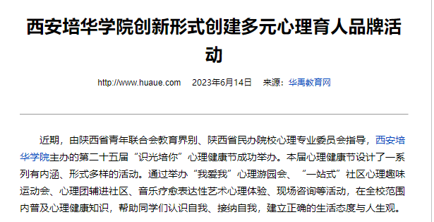 华禹教育网:西安培华学院创新形式创建多元心理育人品牌活动