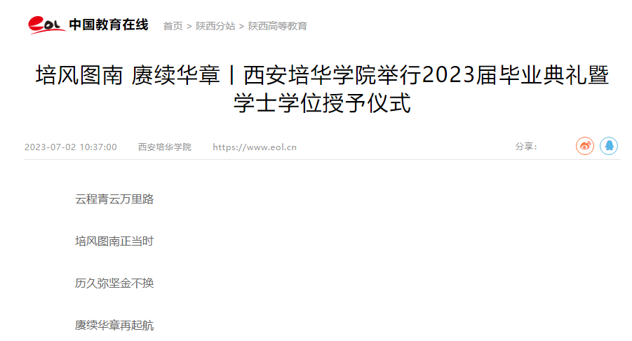 中国教育在线:培风图南 赓续华章丨西安培华学院举行2023届毕业典礼暨学士学位授予仪式