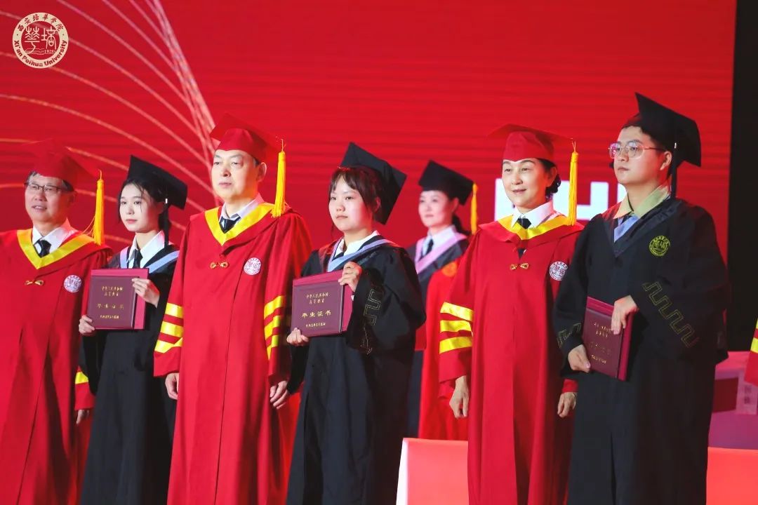 上台授礼的学生共17组本科生,代表着西安培华学院自2007年获得首批民办高校学士学位授予权的第17年,17年赓续奋斗的篇章,十数万名培华学子传承着培华精神,在祖国发展建设的各行各业接续奋斗,奉献青春力量。