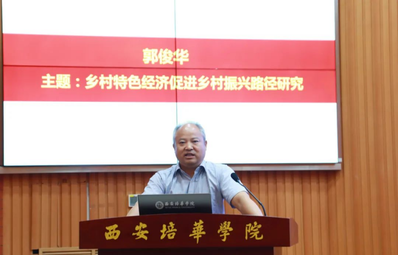 西北大学教授、博士生导师郭俊华作题为《乡村特色经济促进乡村振兴路径研究》的报告