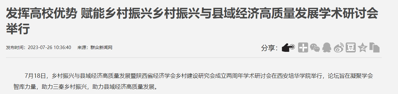 7月18日,乡村振兴与县域经济高质量发展暨陕西省经济学会乡村建设研究会成立两周年学术研讨会在西安培华学院举行,论坛旨在凝聚学会智库力量,助力三秦乡村振兴,助力县域经济高质量发展。
