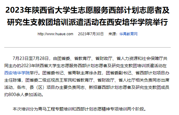 华禹教育网:2023年陕西省大学生志愿服务西部计划志愿者及研究生支教团培训派遣活动在西安培华学院举行