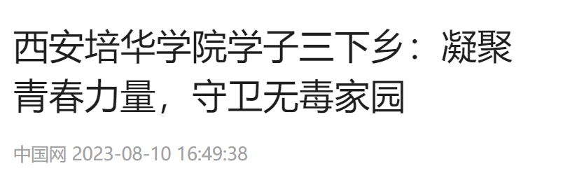 中国网:西安培华学院学子三下乡:凝聚青春力量,守卫无毒家园