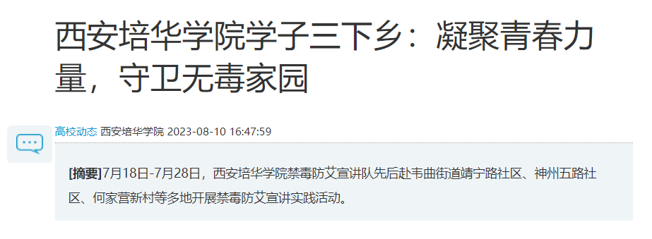 华商网:西安培华学院学子三下乡:凝聚青春力量,守卫无毒家园