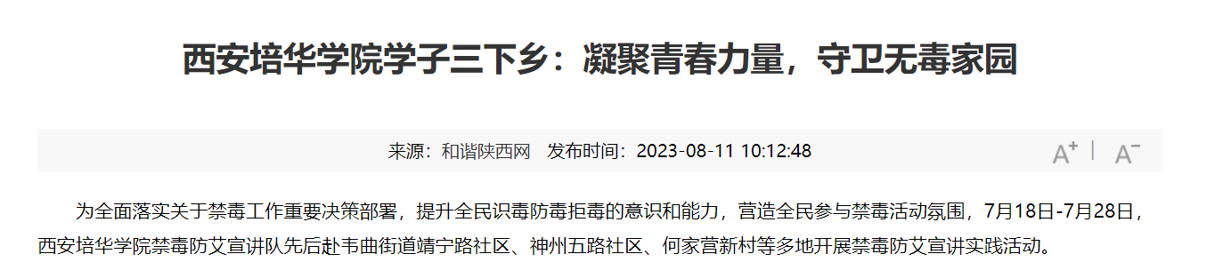 和谐陕西网:西安培华学院学子三下乡:凝聚青春力量,守卫无毒家园