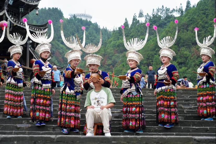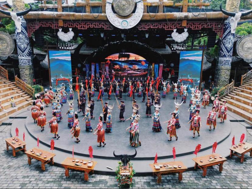 在调研中,团队成员每天穿梭在古老建筑中,他们发现,苗寨简直是一座露天博物馆。无论是穿斗式歇山顶结构的吊脚楼,还是五座重新加固过的风雨桥,这些建筑的风格和形态都让人眼前一亮。同时,苗寨的村民在文化旅游项目上也下足功夫,打造“十二道拦门酒”“文化大巡游”“美丽西江”歌舞表演等众多文化体验活动。千户苗寨将传承千百年的苗族文化以崭新的姿态融入大众视野,他们不断激活本土文化的多元价值,从而激发乡村振兴新活力。