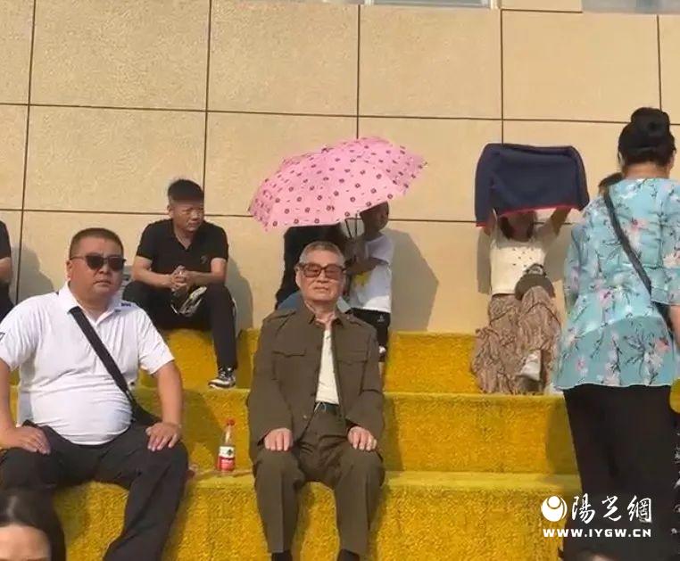 一位81岁的退伍老兵来到现场观看孙子军训