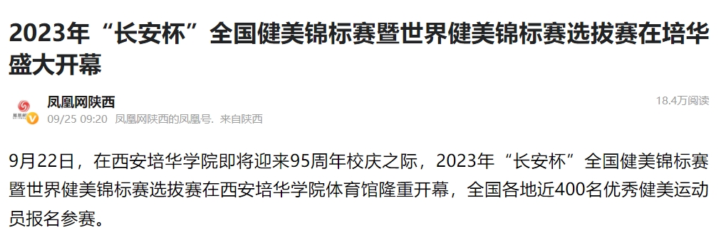凤凰新闻:2023年“长安杯”全国健美锦标赛暨世界健美锦标赛选拔赛在培华盛大开幕
