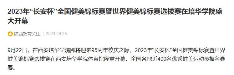 腾讯新闻:2023年“长安杯”全国健美锦标赛暨世界健美锦标赛选拔赛在培华学院盛大开幕