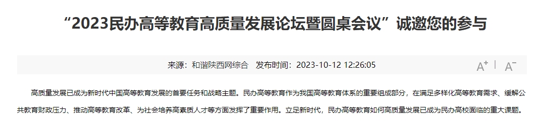 和谐陕西网:邀请函|“2023民办高等教育高质量发展论坛暨圆桌会议”诚邀您的参与