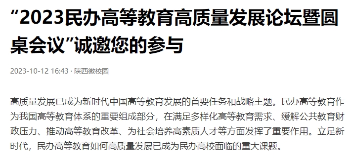 为推动民办高等教育高质量发展,陕西省高等教育学会、陕西省民办教育协会、西安培华学院将于10月22日联合举办“2023民办高等教育高质量发展论坛暨圆桌会议”(以下简称“论坛”)。在培华建校95周年之际,通过本次论坛,旨在搭建一个学术交流平台,汇聚高等教育专家学者、民办高校负责人、行业企业专家等,分享办学经验、探讨发展路径,形成提升民办高等教育高质量发展的策略。我们诚挚邀请民办高校董事长(理事长)、校长,高等教育专家学者出席此次盛会。您的出席将为本次论坛增添更多的精彩与深度,为与会嘉宾带来全新的启示和思考。