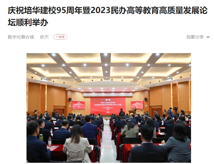 为庆祝培华建校95周年,助力学校高质量发展,10月22日,由陕西省高等教育学会、陕西省民办教育协会主办、西安培华学院承办的“2023民办高等教育高质量发展论坛”在西安培华学院明德楼报告厅举行。高等教育专家学者、民办高校负责人、行业企业专家等齐聚一堂,通过线下论坛交流、线上直播互动的方式,分享办学经验、探讨发展路径,研讨民办高校高质量发展的策略。本次论坛以“民办高等教育高质量发展”为主题,深入探讨民办高等教育如何在教育强国进程中发挥更大作用,更好地在应对发展挑战、破解时代性课题、服务区域创新发展、实现高质量发展等方面如何发挥高等教育不可替代的积极作用具有重要意义。