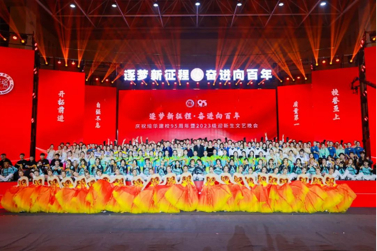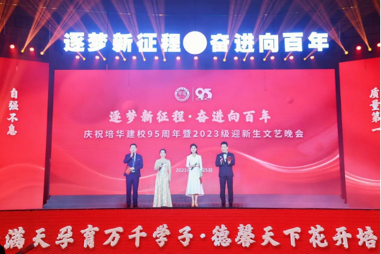 10月25日晚,庆祝西安培华学院建校95周年暨2023级迎新生文艺晚会在西安培华学院长安校区体育馆举行。培华人欢聚一堂,共襄盛会,展现培华师生踔厉奋发,砥砺前行的昂扬姿态,共同见证培华95华诞的辉煌。全体校级领导,各院(部)、中心负责人,校友代表,教师代表,学生代表参加此次晚会。