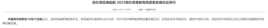 中国青年网西安10月27日电近日,由陕西省高等教育学会、陕西省民办教育协会主办的“2023民办高等教育高质量发展论坛”在西安培华学院召开。建校95周年之际,西安培华学院将以论坛为契机加速推进学校高质量发展。