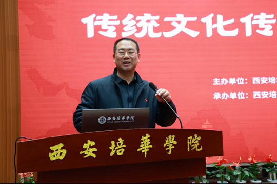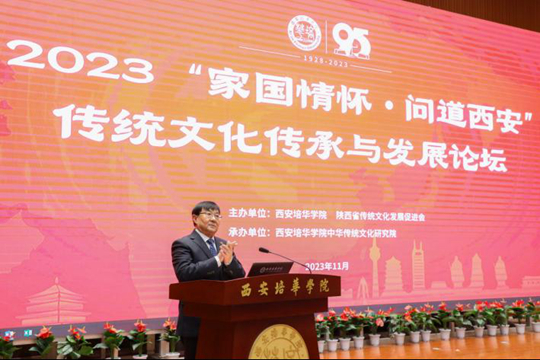 为弘扬家国情怀,传承中华传统文化,振兴文化产业,为西安经济高质量发展建言献策、蓄势赋能,11月6日,由西安培华学院、陕西省传统文化发展促进会联合举办的2023“家国情怀·问道西安”传统文化发展论坛在西安培华学院图书馆报告厅隆重开幕。开幕式由西安培华学院校长李映方主持。