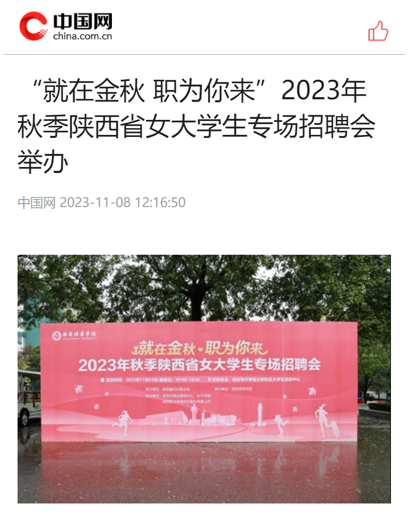 中国网:“就在金秋 职为你来”2023年秋季陕西省女大学生专场招聘会举办