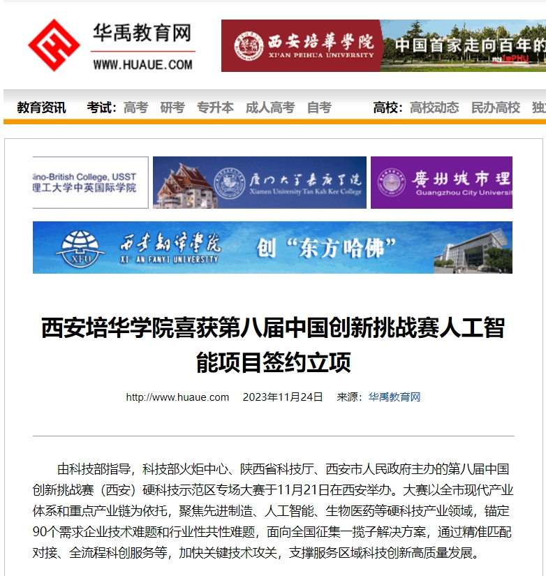 据悉,在西安培华学院科研管理中心的大力支持下,智能科学与信息工程学院于2022年成立了“智能检测技术联合研究中心”,该中心在整合现有人才和资源的基础上,通过“外引内培”,不断加强平台建设和人才队伍建设,紧跟社会需求梳理研究方向,参加本次大赛的罗艺闯团队成员均来自该研究中心。近两年来,“智能检测技术联合研究中心”成员累计发表核心论文10余篇(SCI三区2篇),承接完成产学研合作项目金额50余万元,有力促进了学校科技成果转移转化,助力校企协同创新发展。