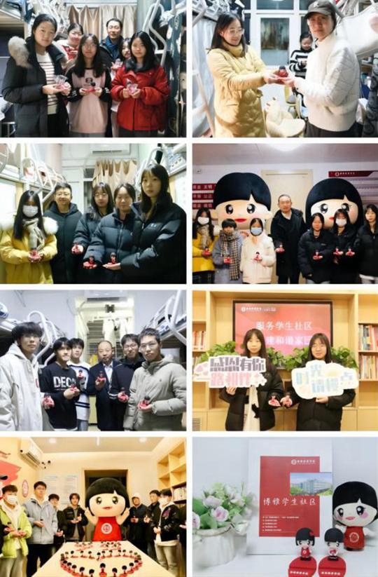学工部老师及辅导员走进学生社区导师工作室、党团活动室、宿舍等,将校庆手办送到每个人手里。