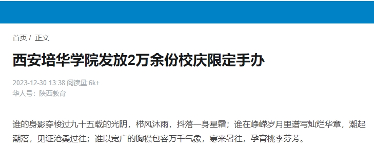 积历史之厚蕴,创今朝之辉煌,乘风浩荡,继往开来续新章。为庆祝培华95周年校庆,西安培华学院推出95周年文创产品,为培华学子们,准备了23000余份校庆限定手办,给同学们留下一份难忘的回忆。