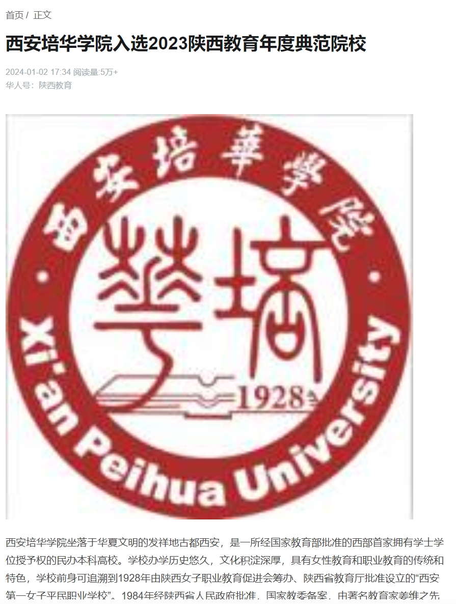 华人头条:西安培华学院入选2023陕西教育年度典范院校