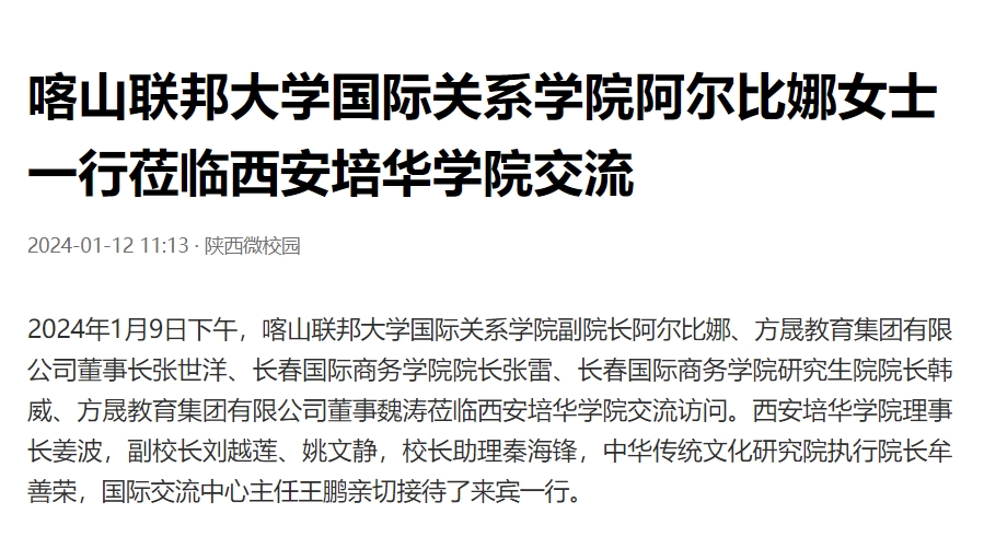 今日头条:喀山联邦大学国际关系学院阿尔比娜​女士一行莅临西安培华学院交流