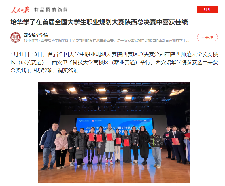 人民日报:培华学子在首届全国大学生职业规划大赛陕西总决赛中喜获佳绩