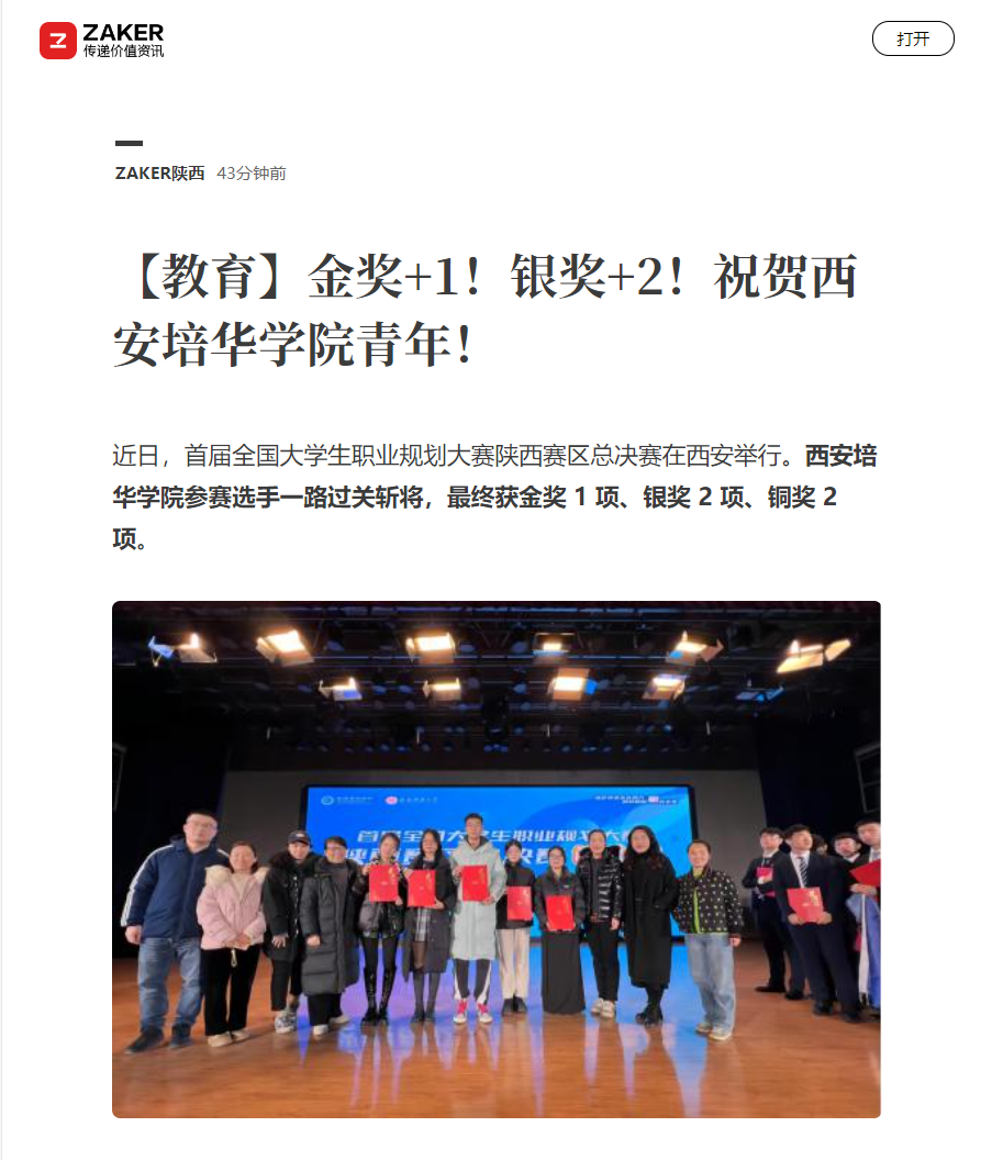 ZAKER:【教育】金奖+1!银奖+2!祝贺西安培华学院青年!