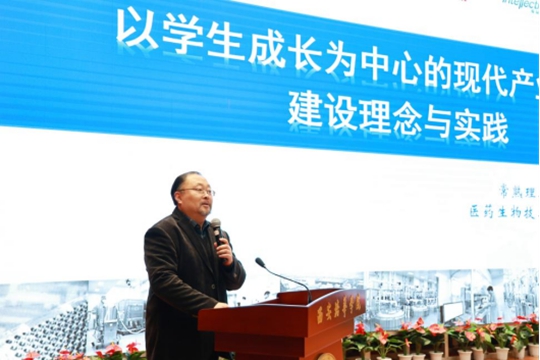 常熟理工学院医药生物技术学院院长冀宏教授作了题为《以学生成长为中心的现代产业学院建设理念与实践》的专题报告,他以常熟理工学院为例,阐述了现代大学教育所面临的问题及解决的思路和途径。