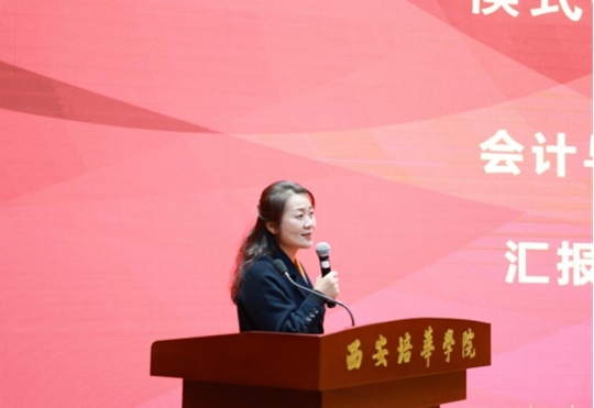 会计与金融学院副院长丁阳作了题为《岗课赛证融通的商科产教融合育人模式探索与实践》的专题报告,介绍了会计与金融学院以校外基地为抓手,建立“岗课赛证”融通的应用技术型人才培养模式。