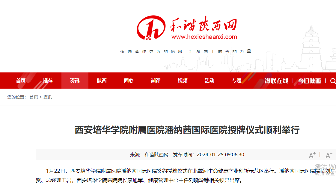 和谐陕西网:西安培华学院附属医院潘纳茜国际医院授牌仪式顺利举行