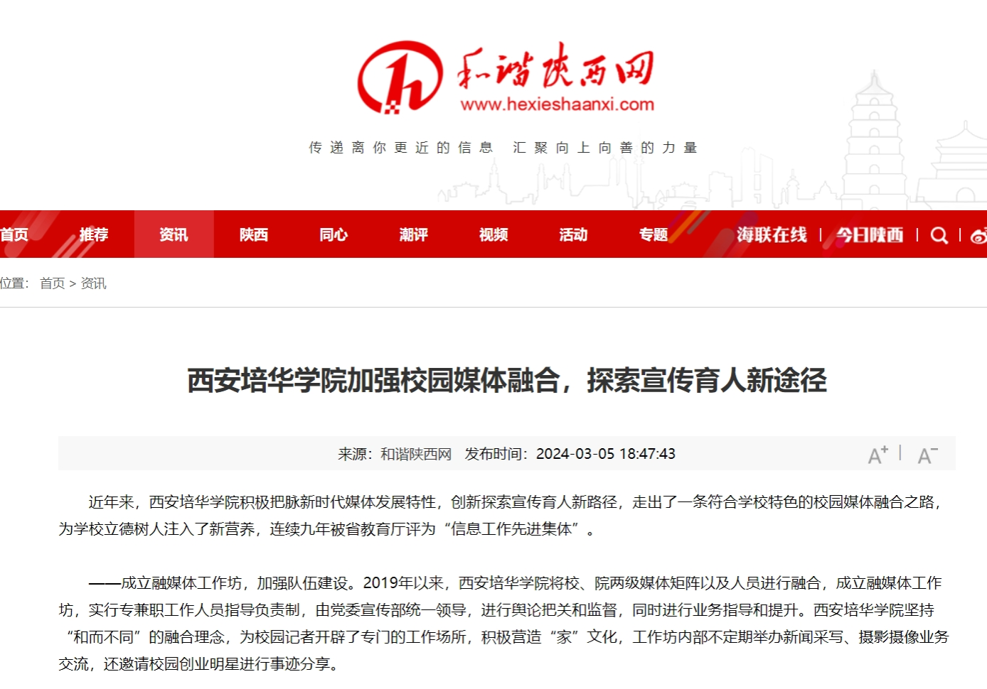 和谐陕西网:西安培华学院加强校园媒体融合,探索宣传育人新途径