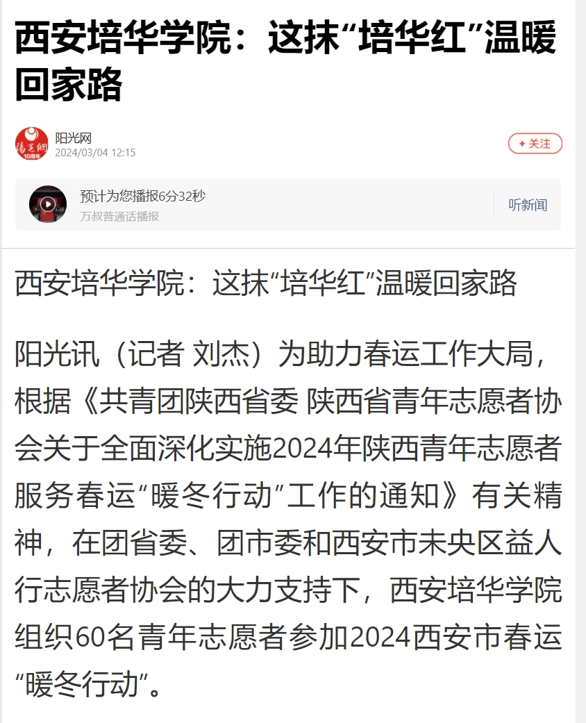 搜狐新闻:西安培华学院:这抹“培华红”温暖回家路