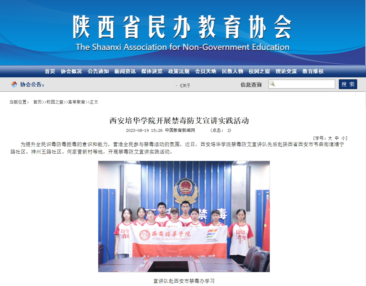 为提升全民识毒防毒拒毒的意识和能力,营造全民参与禁毒活动的氛围,近日,西安培华学院禁毒防艾宣讲队先后赴陕西省西安市韦曲街道靖宁路社区、神州五路社区、何家营新村等地,开展禁毒防艾宣讲实践活动。