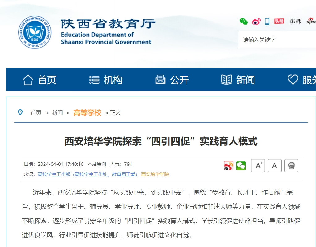 陕西省教育厅:西安培华学院探索“四引四促”实践育人模式