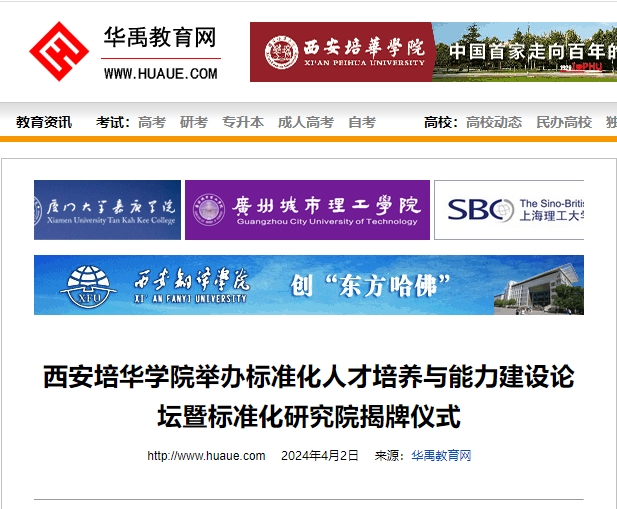 华禹教育网:西安培华学院举办标准化人才培养与能力建设论坛暨标准化研究院揭牌仪式
