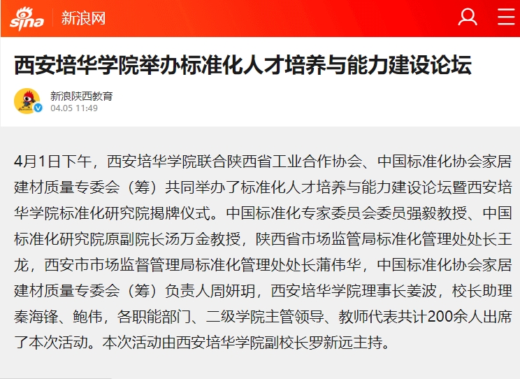 新浪:西安培华学院举办标准化人才培养与能力建设论坛