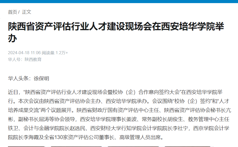 华人头条:陕西省资产评估行业人才建设现场会在西安培华学院举办