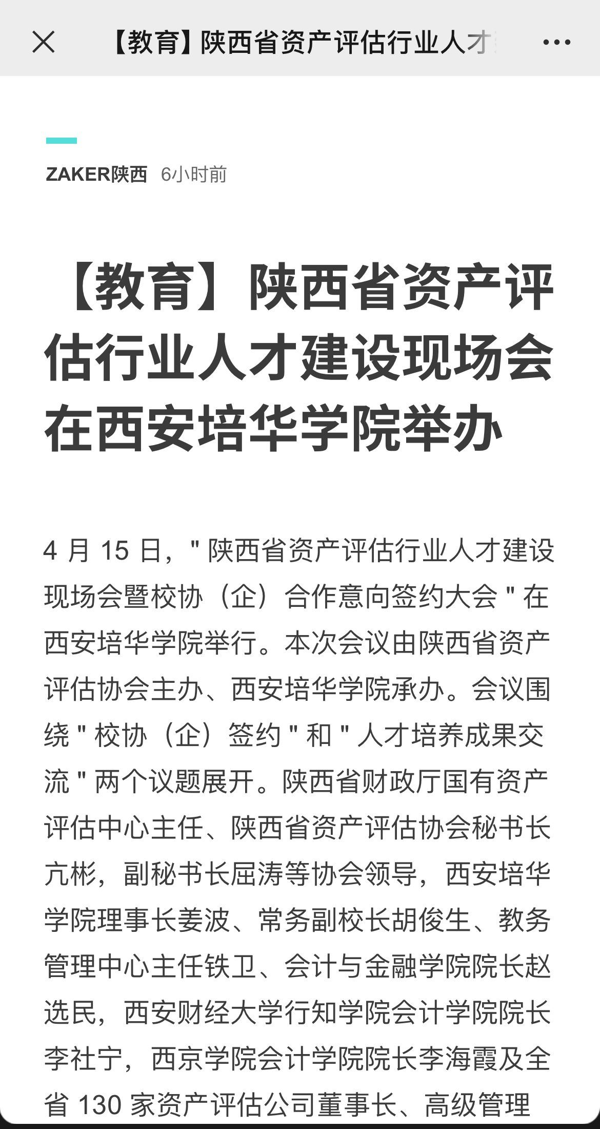 ZAKER:【教育】陕西省资产评估行业人才建设现场会在西安培华学院举办