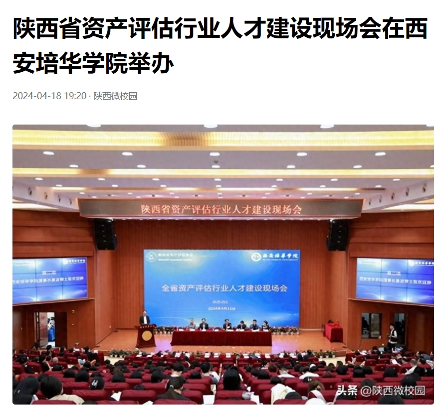 今日头条:陕西省资产评估行业人才建设现场会在西安培华学院举办