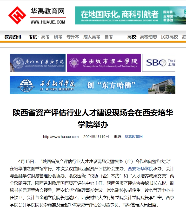 华禹教育网:陕西省资产评估行业人才建设现场会在西安培华学院举办