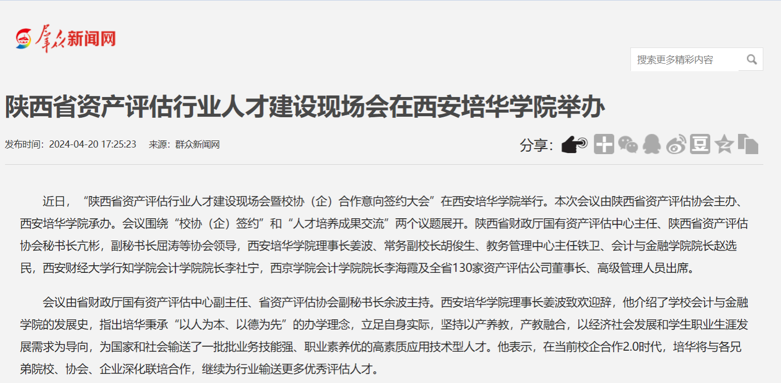 群众新闻网:陕西省资产评估行业人才建设现场会在西安培华学院举办