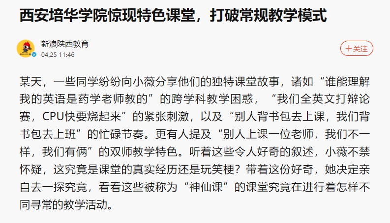 新浪新闻:西安培华学院惊现特色课堂,打破常规教学模式