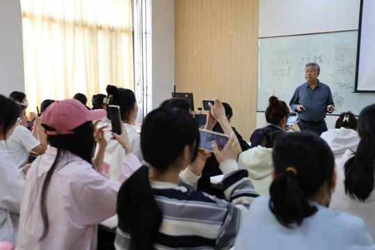 陈有亮教授的课堂上,学生纷纷用手机记录精彩的环节