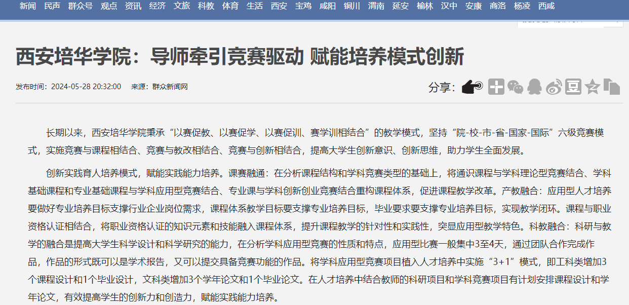 群众新闻网:西安培华学院:导师牵引竞赛驱动 赋能培养模式创新