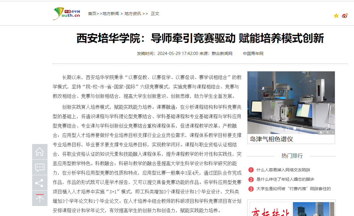 阳光网:西安培华学院:导师牵引竞赛驱动 赋能培养模式创新